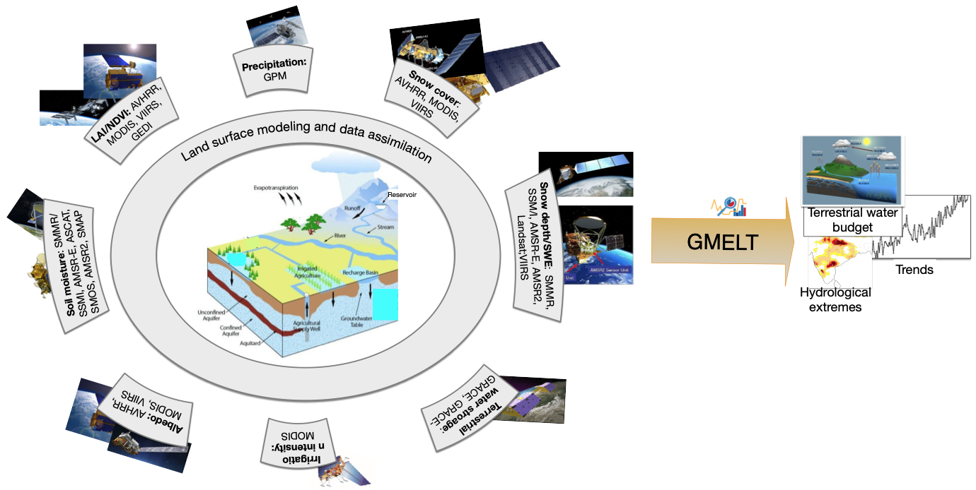High Mountain Asia (HMA), a region that includes the Tibetan Plateau and the Himalayan, Karakoram, Pamir, Hindu Kush, and Tien Shan mountains, represents the headwaters of Asia's most prominent hydrologic basins, which feed billions of people. HMA is subject to warming at an alarming rate in addition to an intense human management. During HiMAT 2, our team developed a terrestrial water cycle reanalysis with the best available, downscaled meteorology conditions, a state-of-the-art land surface model, a large suite of remote sensing measurements, and advanced data assimilation algorithms to better understand the impacts of a changing climate and human management on land surface processes and subsurface hydrology in HMA.
